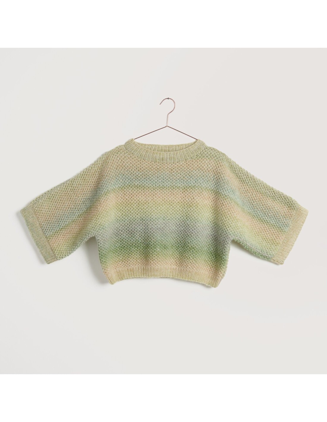 De collectie bestaat uit luchtige shirts, tops, truien, jasjes, sjaals, tassen en accessoires, allemaal met een duidelijke snit, vrouwelijke silhouetten en een zomerse uitstraling. De ontwerpen spelen met getextureerde patronen, kleurverlopen, multi-threads en verrassende materiaalcombinaties, perfect voor wie houdt van eigentijdse handgemaakte mode.