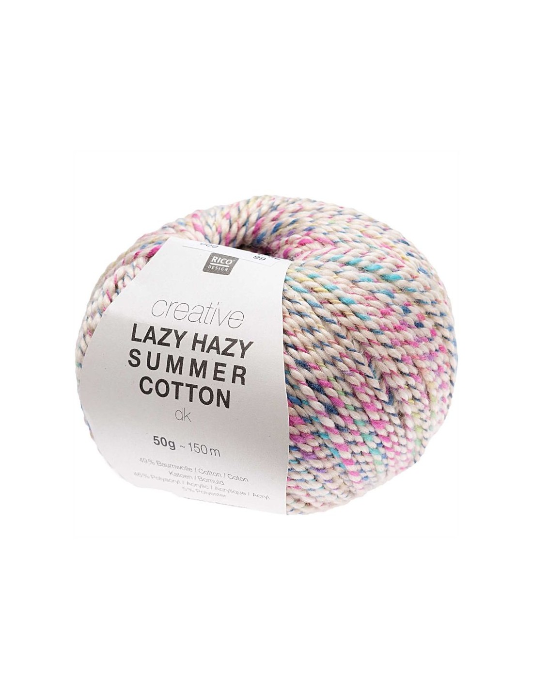 Creative Lazy Hazy Summer Cotton is een speels, licht gedraaid garen met een subtiel gemêleerd kleureffect. De katoenmix maakt het garen ideaal voor luchtige zomerkleding en accessoires. Perfect voor breien en haken met een fris, moderne uitstraling.